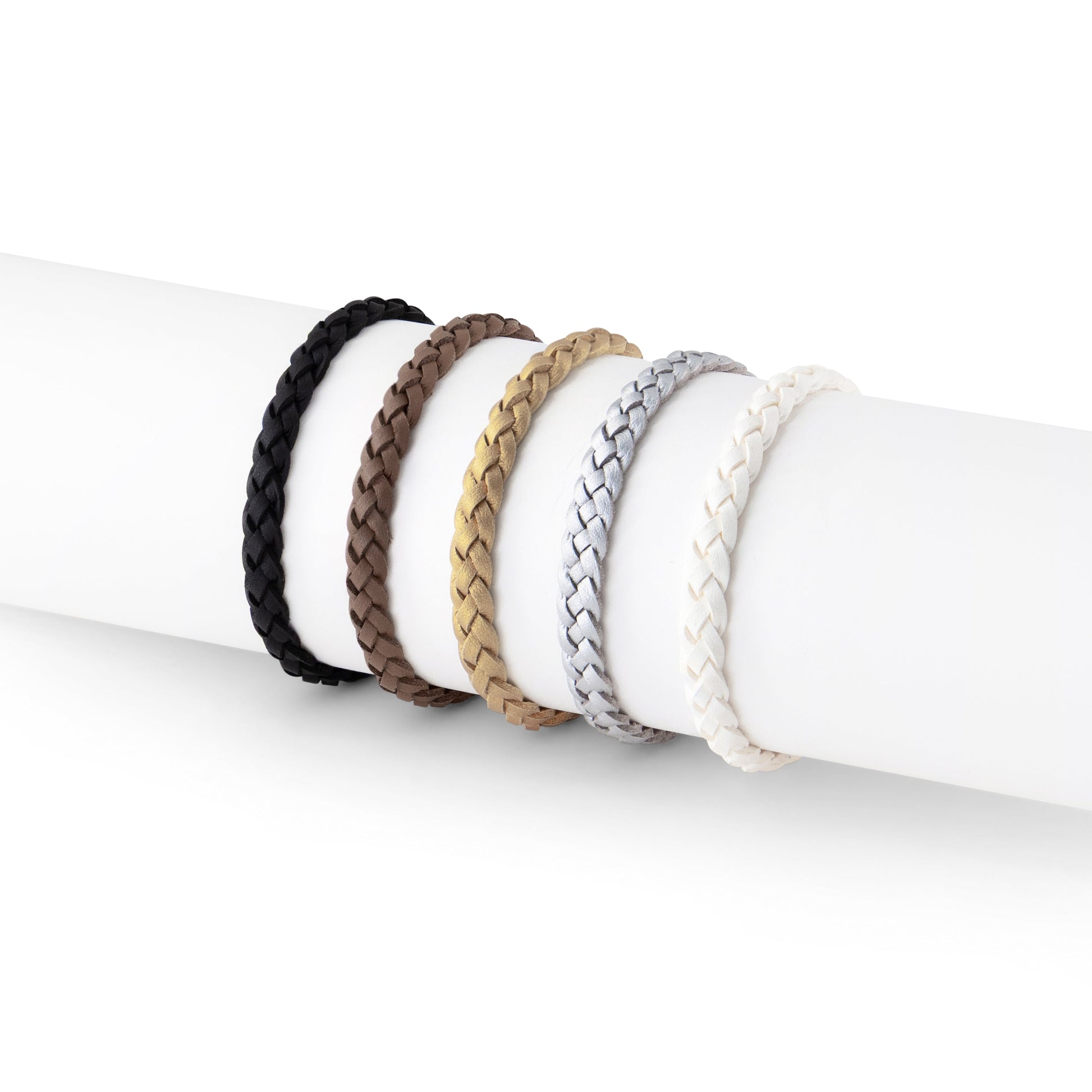 - Includes 5 bands: 1 each of Black, Brown, White, Gold, Silver